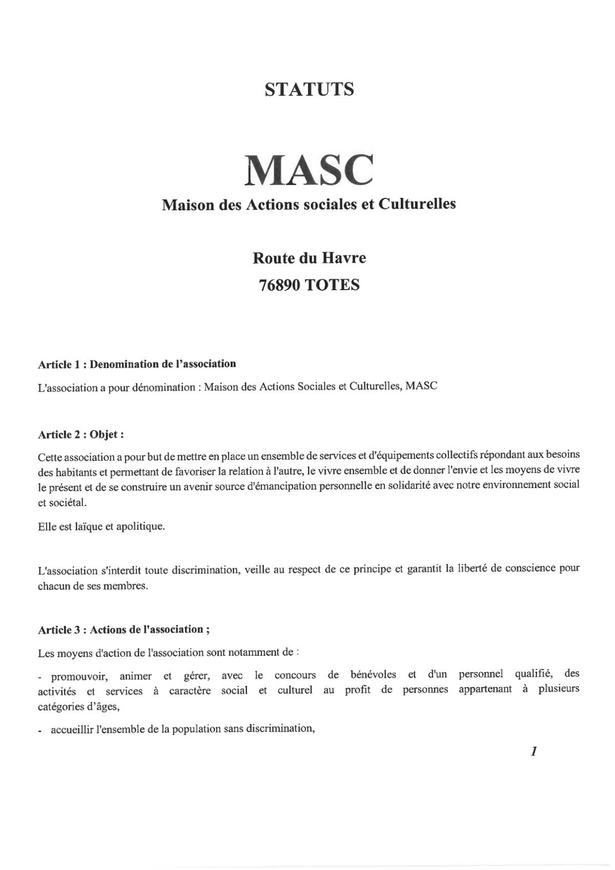 STATUT MASC